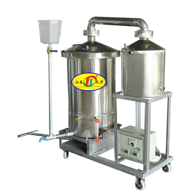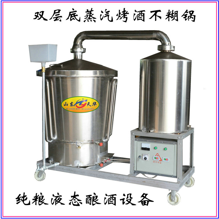 天華新型蒸汽式釀酒設(shè)備整機裝在可四輪拉車上,移動、使用方便,安全可靠,以電加熱或煤氣加熱蒸酒,操作簡單,衛(wèi)生環(huán)保,便于流動或上門蒸酒,是家庭,集貿(mào)市場、小型酒坊進行糧食酒蒸餾的理想設(shè)備,它的出現(xiàn),使人們告別了勾兌酒,可以飲用健康放心的白酒,同時也提高了糧食轉(zhuǎn)化收益。