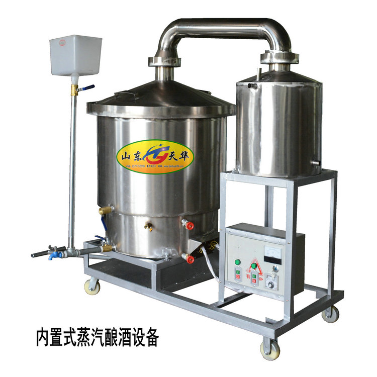天華新型蒸汽式釀酒設(shè)備設(shè)計新穎,外形美觀,由加熱裝置,蒸鍋,蒸汽水箱,導(dǎo)氣管、冷卻器組成,與物料接觸部分采用不銹鋼材料焊接而成,不會產(chǎn)生對人體有害的鉛、鋁等物質(zhì),耐酸堿腐蝕使用壽命長。